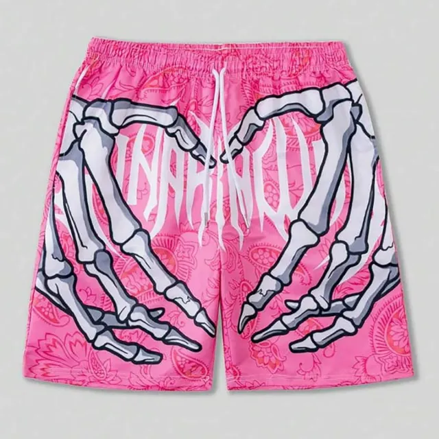 Pantalones cortos rosas corazón esqueleto