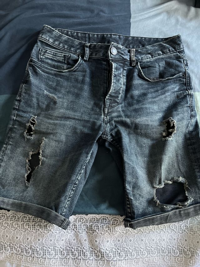 Pantalones cortos vaqueros negros desgastados