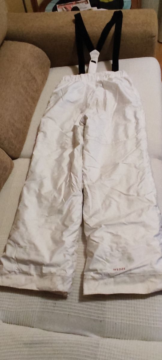 2 pantalones de esquí blanco y gris marca Wedze de Decathlon con tirantes y talla 14 años.