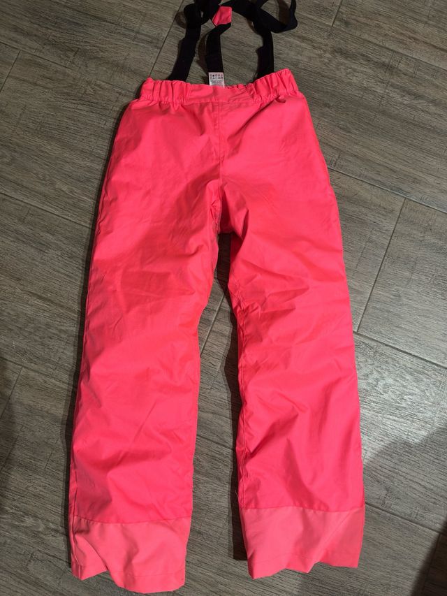 Detalles del productoPantalones de esquí de color rosa brillante con tirantes negros. Perfectos para la nieve.