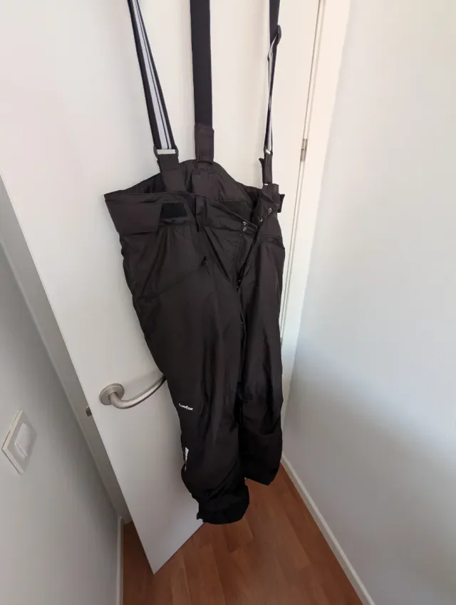 Detalles del productoPantalones de esquí negros con tirantes ajustables. Perfectos para disfrutar de la nieve con comodidad.