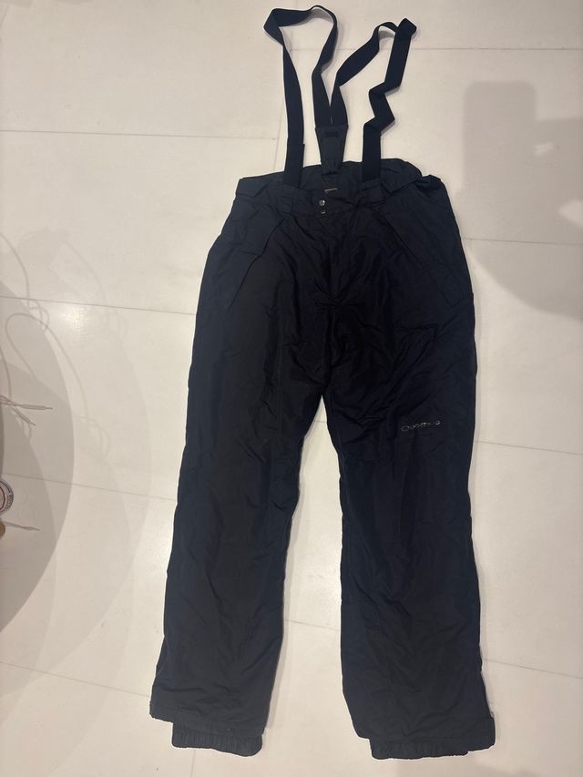 Detalles del productoPantalones de esquí negros con tirantes, talla XL. Perfectos para disfrutar de la nieve con comodidad.