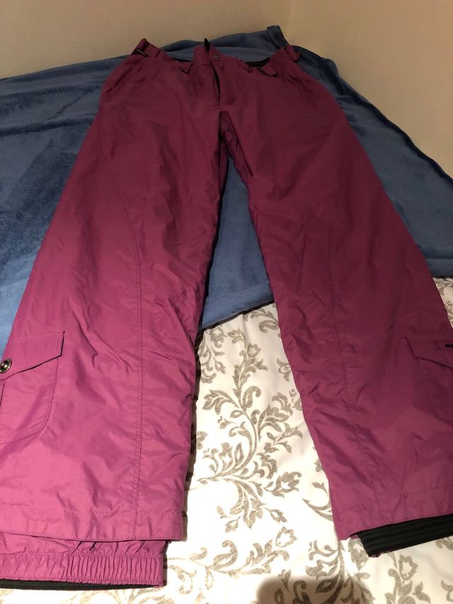 Detalles del productoPantalones de esquí de color morado, diseñados para mujer.