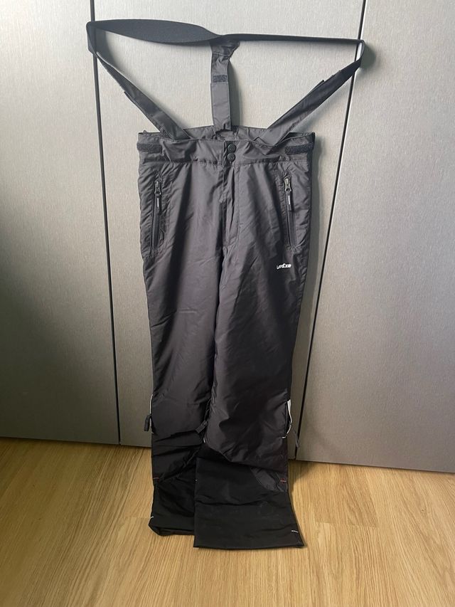 Detalles del productoPantalones de nieve negros con tirantes ajustables. Perfectos para actividades al aire libre en climas fríos.