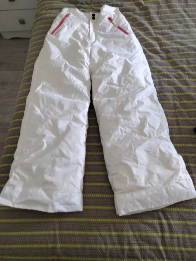 Pantalones de nieve blancos de la marca Wred'ze. - Talla 12. - Cremalleras rosas en los bolsillos.