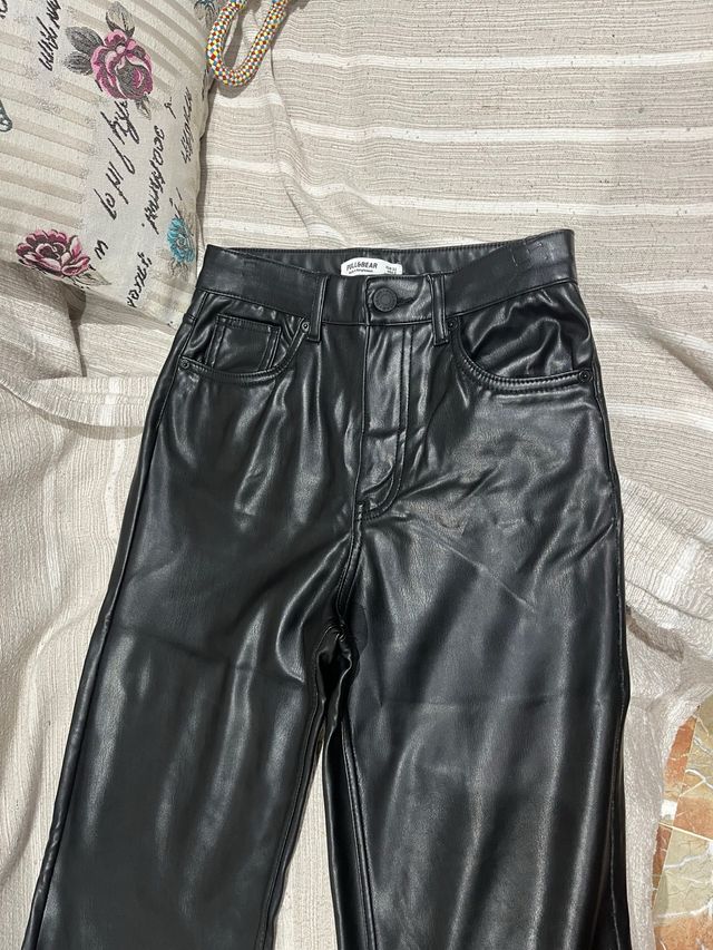 Pantalones efecto piel Pull&Bear negros