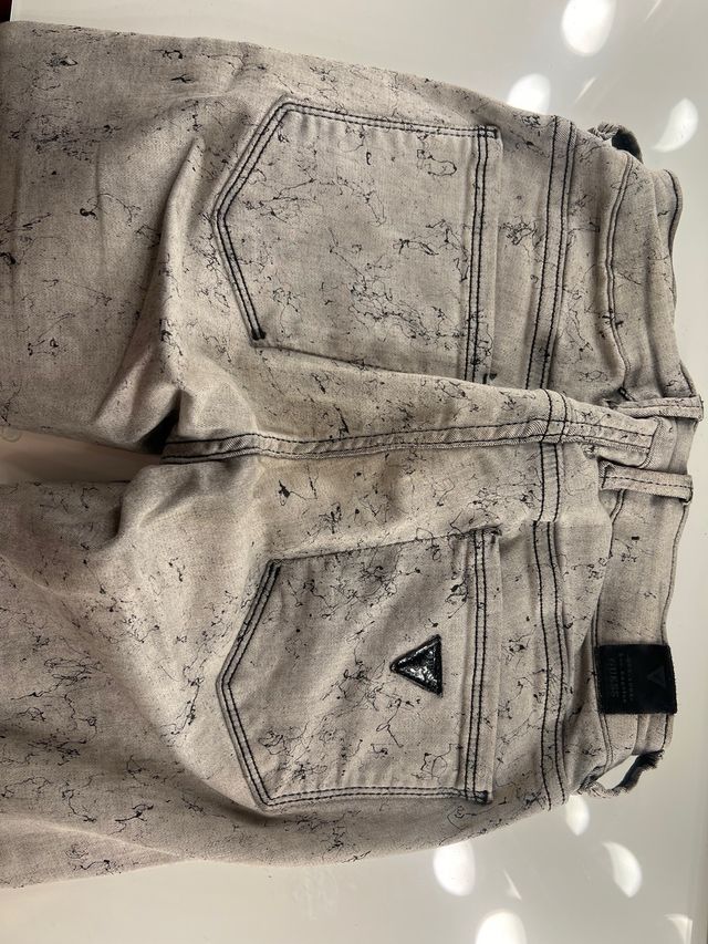 Pantalones largos tipo legging. Talle bajo. Marca guess. Gris con detalles como manchados. Se ajusta muy bien. Corte la etiqueta pero debe ser una talla 24