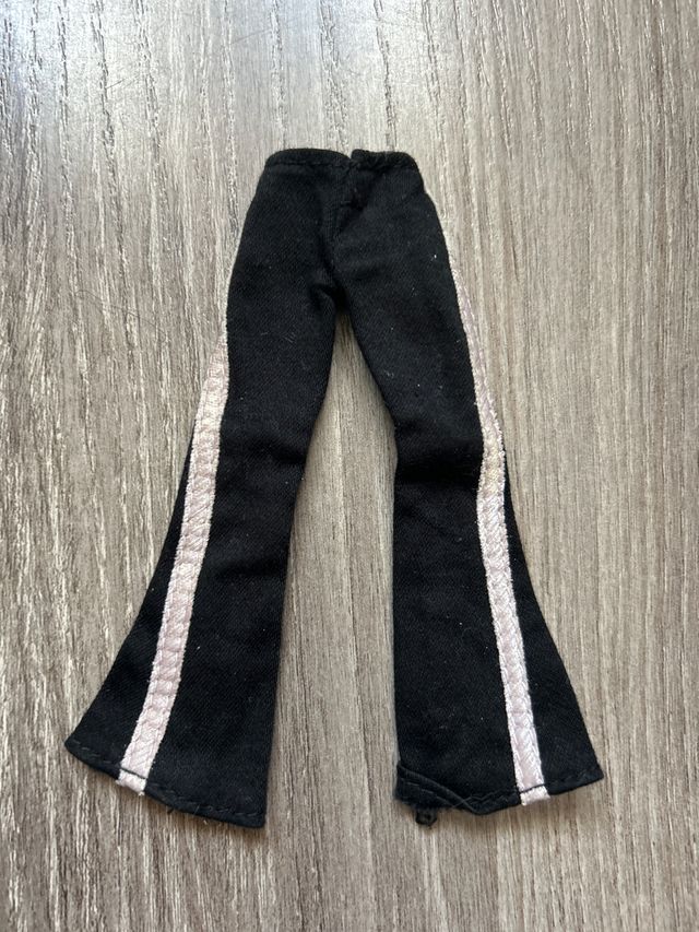 Pantalones negros con linea lateral y acampanados para muñeca Bratz Jade Strut It. se venden tal cual se ve en las fotos, necesitan acicalado.