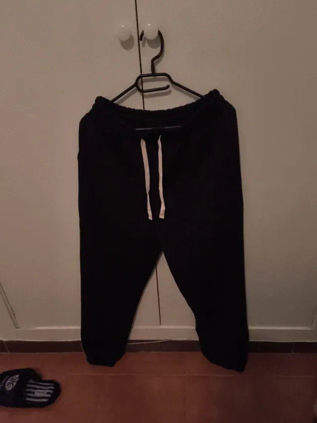 Detalles del productoPantalones negros de mujer en talla XL. Cuentan con un cordón blanco en la cintura para un ajuste cómodo.