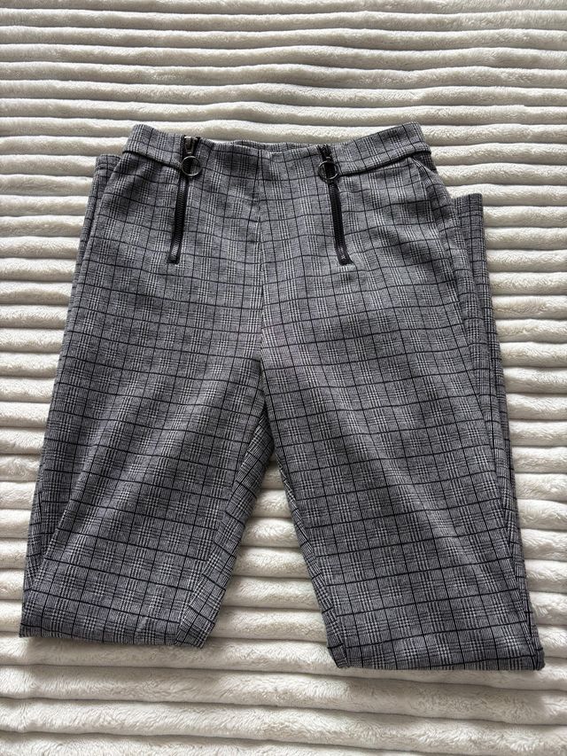 Pantalones pitillo cuadros grises