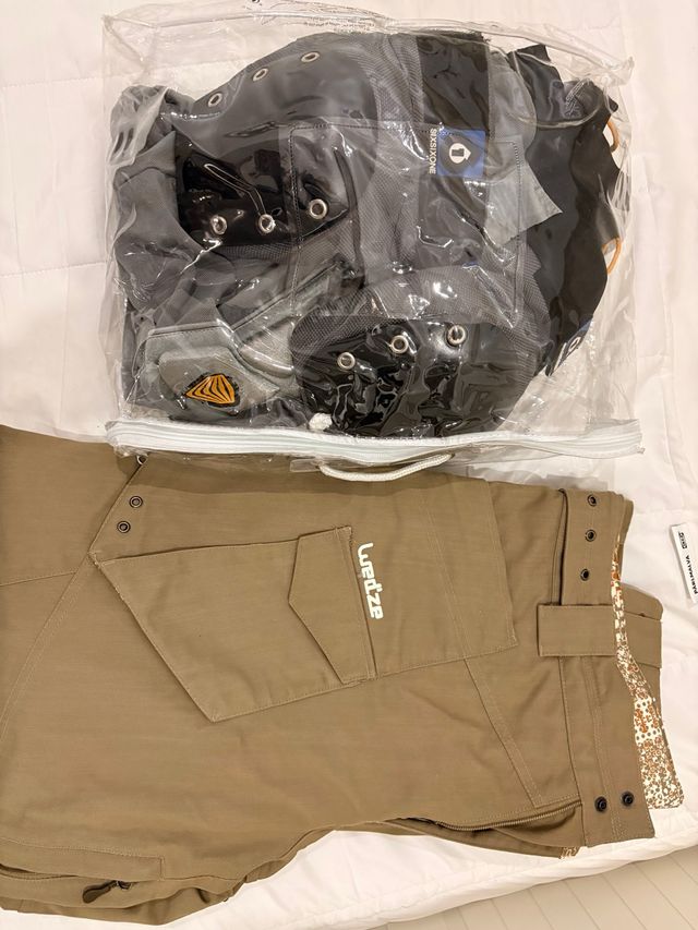 Detalles del productoConjunto de pantalones de snowboard Wedze y protecciones.