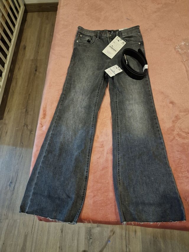 Pantalones Stradivarius grises acampanados