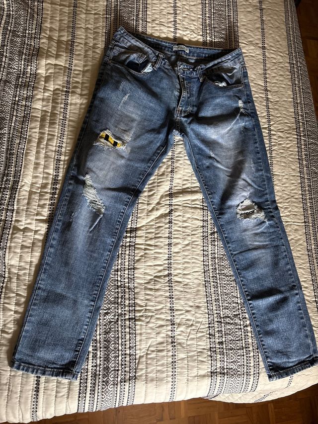 Pantalones vaqueros desgastados con parche
