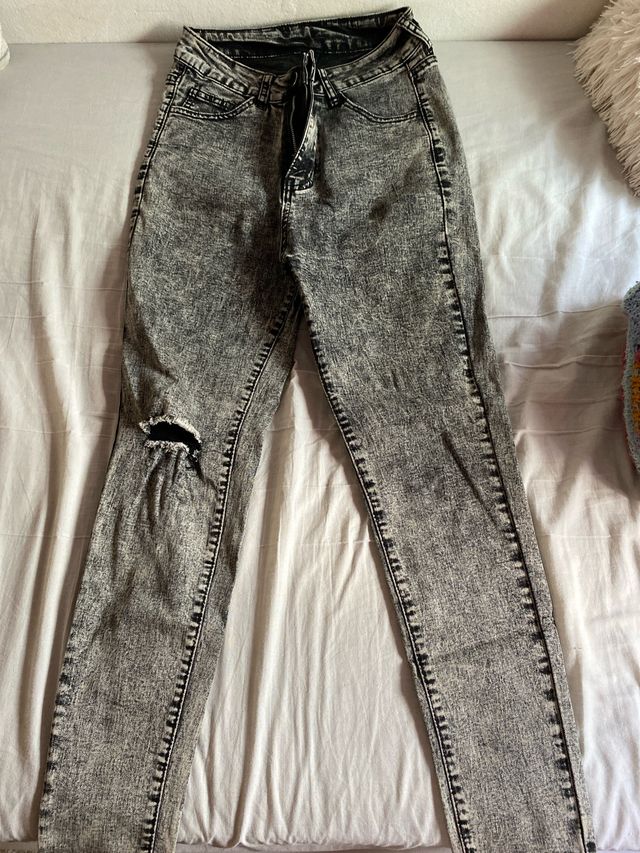 Pantalones vaqueros desgastados negros y grises