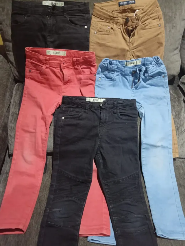 Detalles del productoLote de pantalones vaqueros para niño en diferentes colores y estilos.