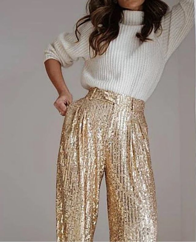Pantalones Zara Lentejuelas Dorados