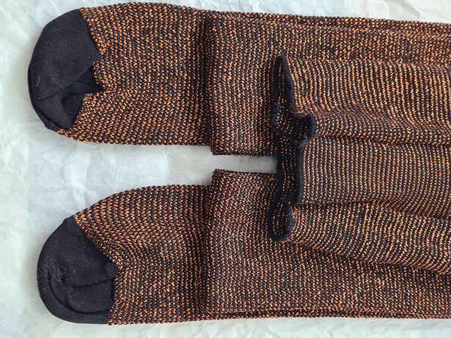 Medias tejido de punto, algodón negro y cobre. Marca Medium. Grueso. Talla Única (tipo lápiz). Comprada en Harrods (Londres). Oportunidad pantis exclusivos de invierno. Nuevo sin utilizar.