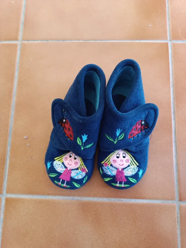 Pantuflas infantiles de Ben y Holly, talla 25. Han sido poco usadas y están en buen estado. - Diseño azul con personajes. - Cierre de velcro.