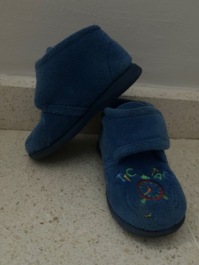 Detalles del productoPreciosas pantuflas para niño, color azul azafata. Ideales para mantener los pies calentitos en casa.