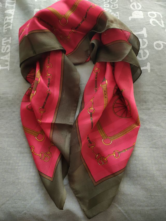 Pañuelo de cuello sin estrenar, está nuevo. Es cuadrado, de unos 75 cm. Es en tonos rojo agranatado y verde botella. Tela de tacto agradable.