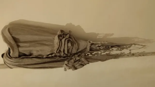 Pañuelo de tela con un diseño floral. - Adornado con dos aplicaciones en forma de flor. - Detalle de pompones en uno de los extremos.