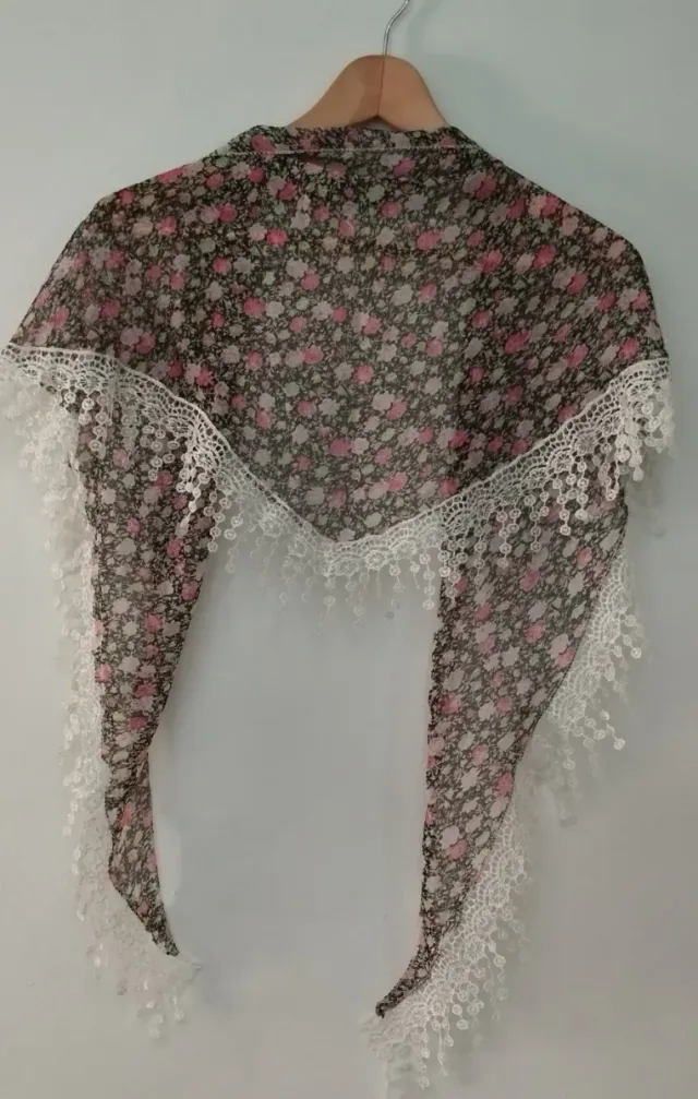 Pañuelo gasa floral con encaje blanco
