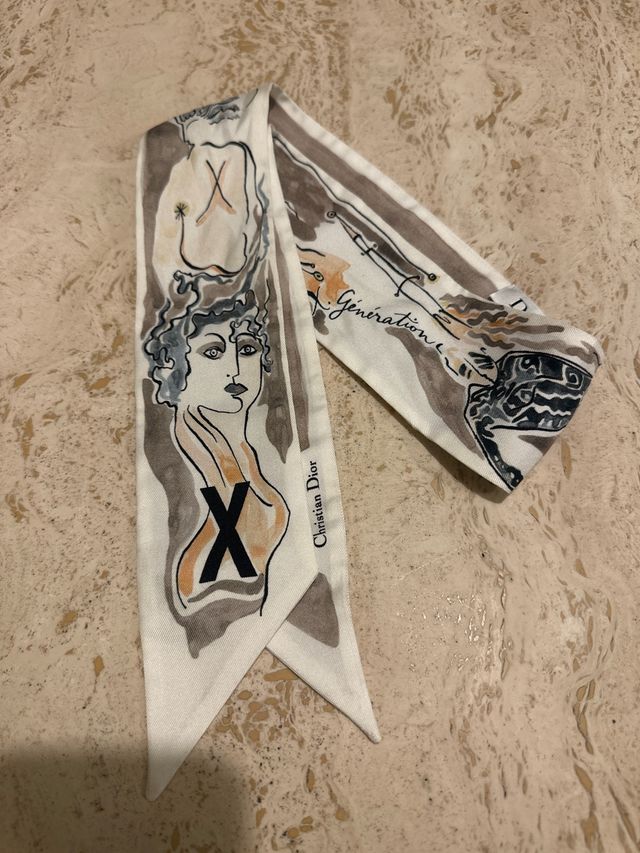 Detalles del productoElegante pañuelo Mitzah de Christian Dior con un diseño artístico.