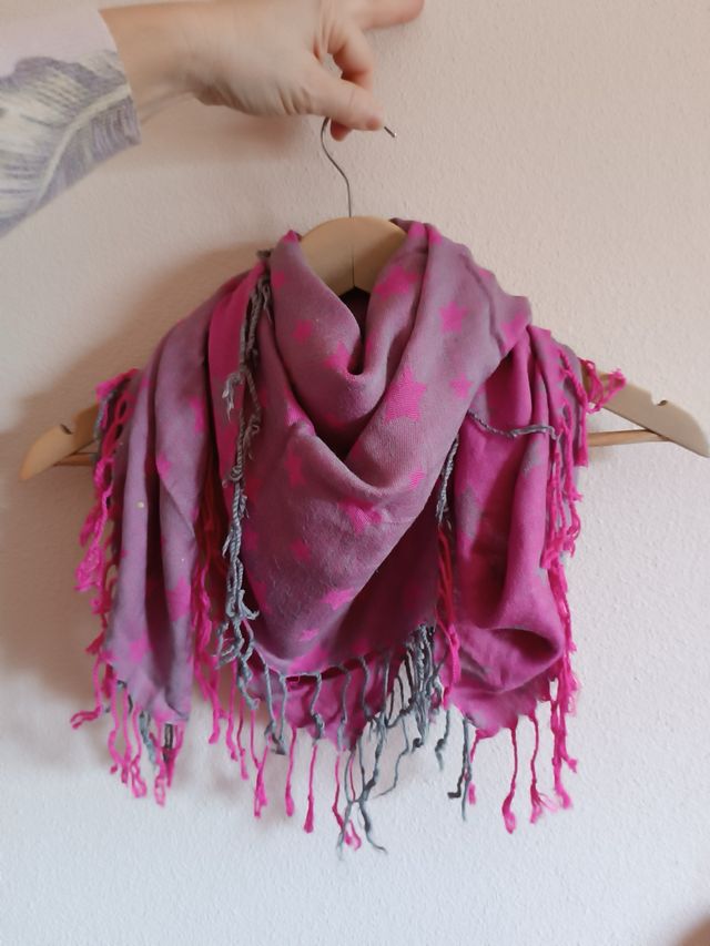 Pañuelo Mujer Reversible fucsia estrellas 90cm