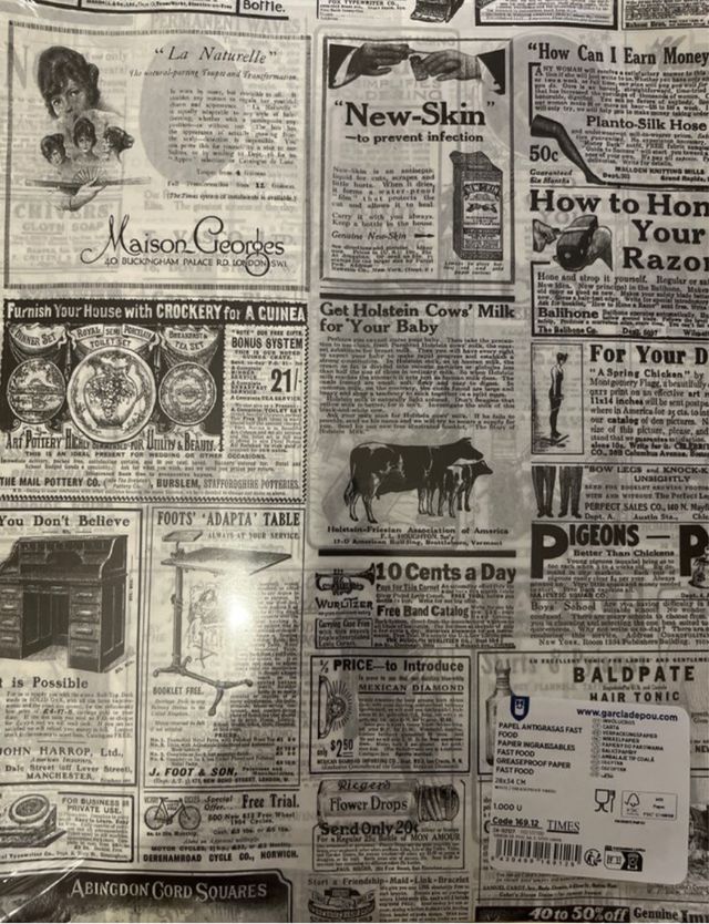 Papel antigrasa de la marca Garcia de Pou, ideal para alimentos. - Medidas: 28x34 cm. - Apto para uso alimentario. - Cada paquete incluye 1000 unidades.