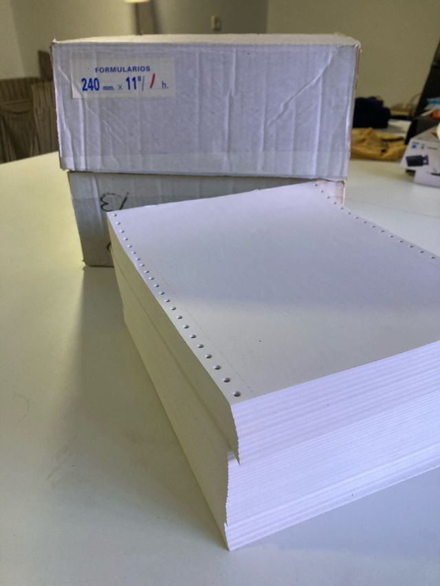 Detalles del productomedia caja de papel continuo para impresora matricial. el taco de hojas mide unos 11,5 cm. de alto