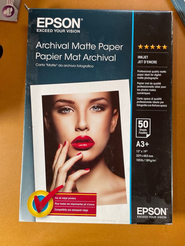 Papel Epson A3+ *40 hojas. Archival Matte Paper.