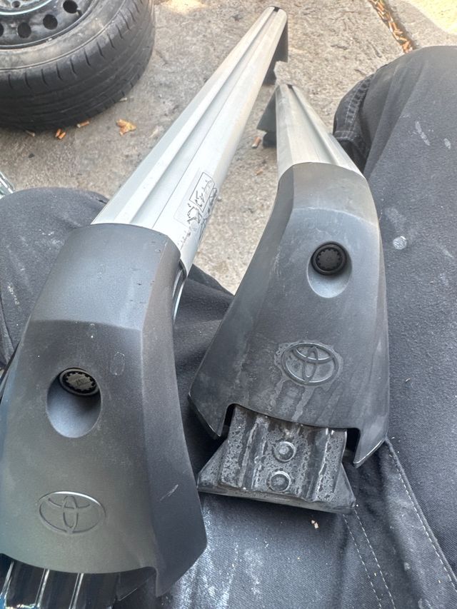 Detalles del productoSe venden dos barras portaequipajes para Toyota. Están en buen estado, aunque muestran señales normales de uso.