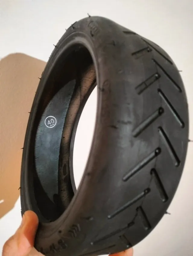 Neumático de goma para patinete eléctrico. - Diseño con tacos para un buen agarre. - Marcado 40 en el interior.