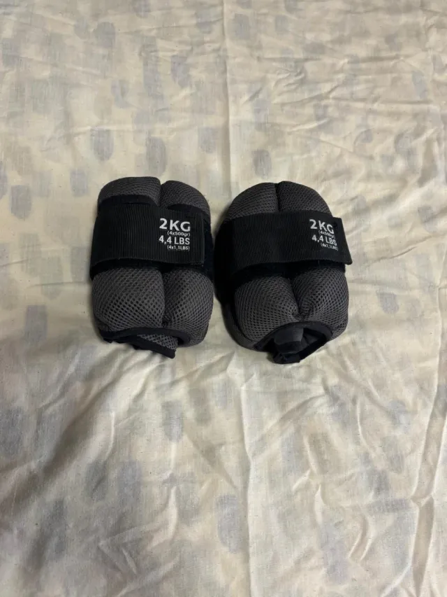 - Cada tobillera pesa 2 kg (4.4 lbs).