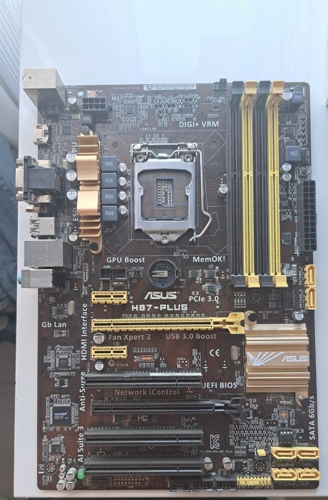 Detalles del producto Se vende H87-PLUS para reparar o para piezas, tiene dos pines rotos (no doblados y no son pines que van a tierra) y por ende el socket se tiene que cambiar, pero no tengo la maquinaria necesaria para hacerlo, se la vendo a alguien que sepa ;) Hago envíos. Precio no negociable. Al ser para piezas no acepto devoluciones y no se si arreglando solo el socket arreglará el problema, con lo cual no es mi responsabilidad.