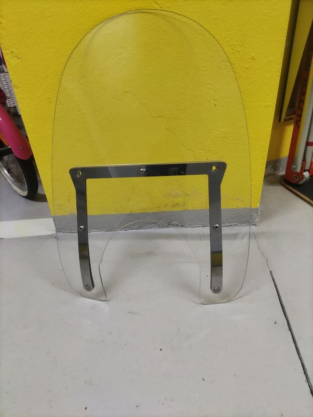 Parabrisas transparente para moto custom, en buen estado. - Incluye tornillería.
