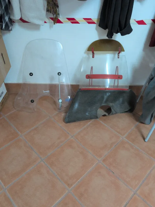 Parabrisas original para scooter Vespa. Fabricado en plástico transparente. - Logo de Vespa visible.