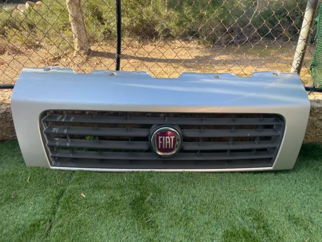 Parachoques delantero para Fiat Ducato. Pieza de recambio con diseño de rejilla. - Logo de Fiat integrado. - Color plateado.