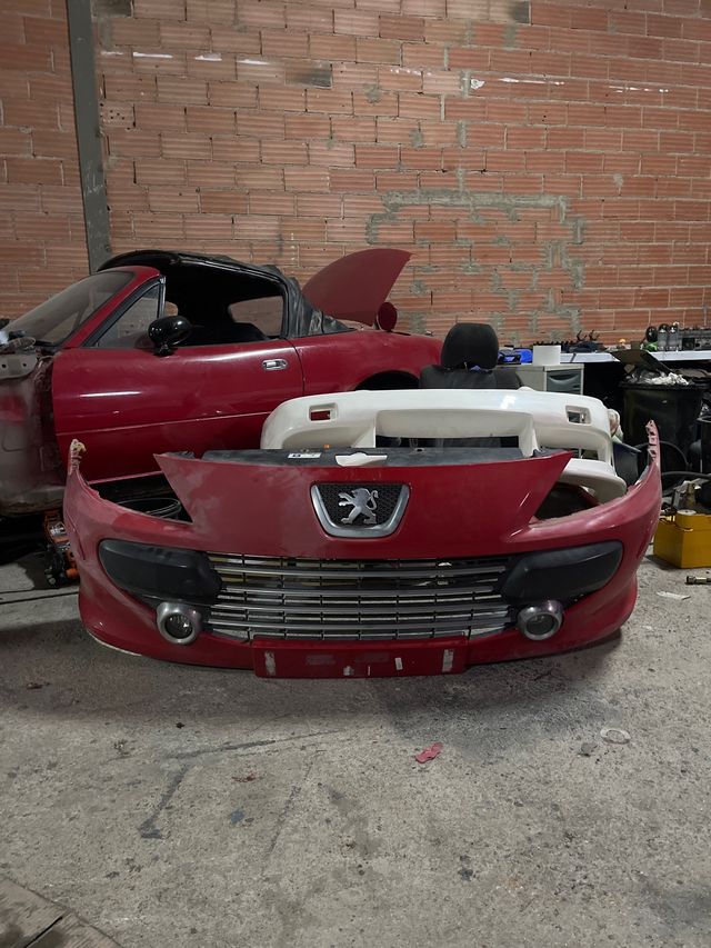 Paragolpes delantero para Peugeot 307. - Color rojo. - Diseño deportivo con rejilla plateada y detalles negros.