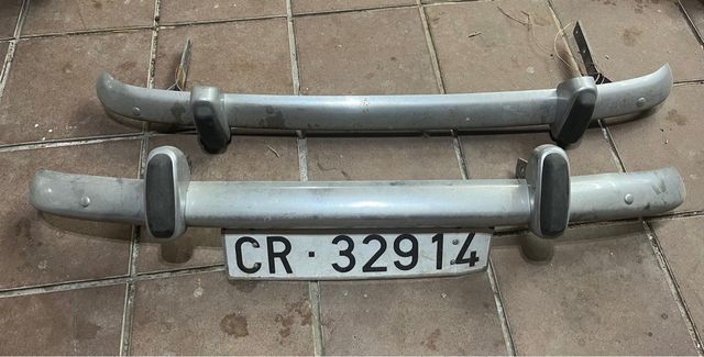 Paragolpes delantero y trasero para Seat 850 Especial. Piezas de metal con protectores de goma. - Material: Metal y goma. - Color: Plateado