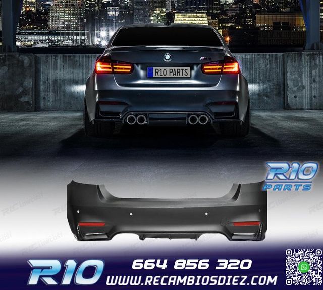Móvil: 664 856 320 - Referencia: R1P205763. PARAGOLPES TRASERO BMW F30 LOOK M3 + KIT ESCAPE Compatible con: BMW Serie 3 F30 (2011-2019) Berlina Especificaciones: Modelo: Look M3 Material: Plástico ABS PDC (Perforación para sensores de estacionamiento): Sí Salida de escape: Doble a ambos lados (--OO---OO--) Incluye: Colas de escape / Rejillas / Molduras de luz antiniebla / Molduras Paragolpes listo para pintar Montaje. Fácil instalación, con los mismos accesorios originales. ABS. Fabricado en plástico de alta calidad con gran resistencia y durabilidad. Estilo. Dale a tu vehículo un