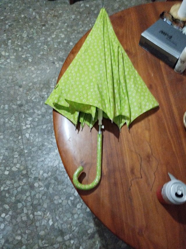 Paraguas verde con flores