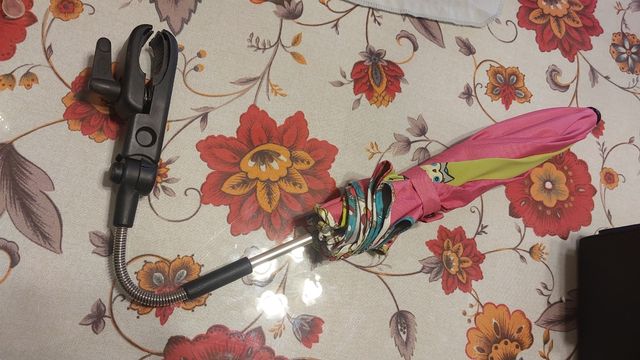 Detalles del productoPreciosa sombrilla para cochecito de bebé, ideal para proteger del sol a tu pequeño. Se encuentra en buen estado.