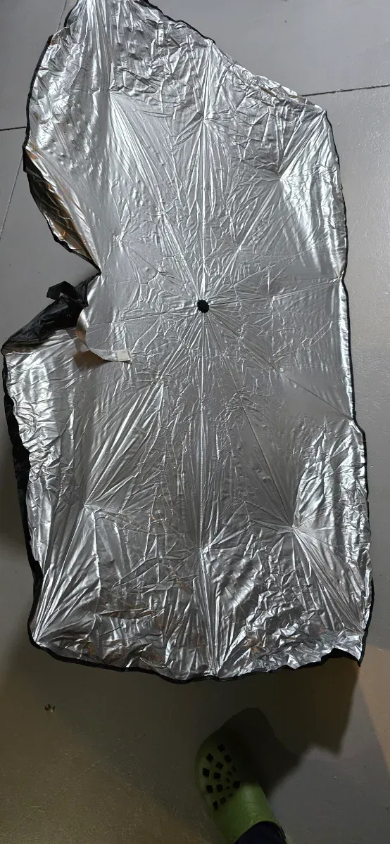 Detalles del productoParasol para coche tipo paraguas, diseñado para proteger el interior de tu vehículo de los rayos solares. Dimensiones 130x70