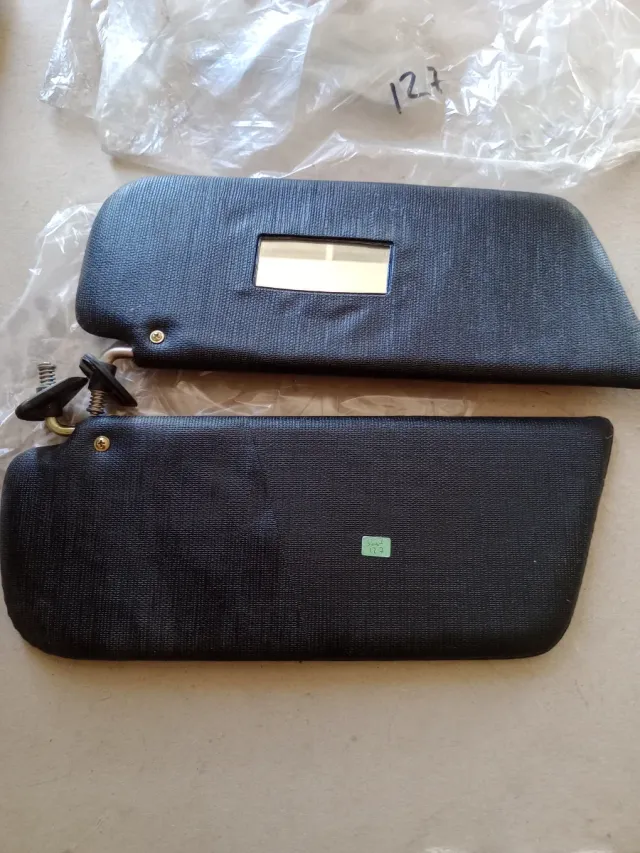Detalles del productoSet de dos parasoles para coche Seat 127 en color negro. Uno de ellos incluye un espejo.
