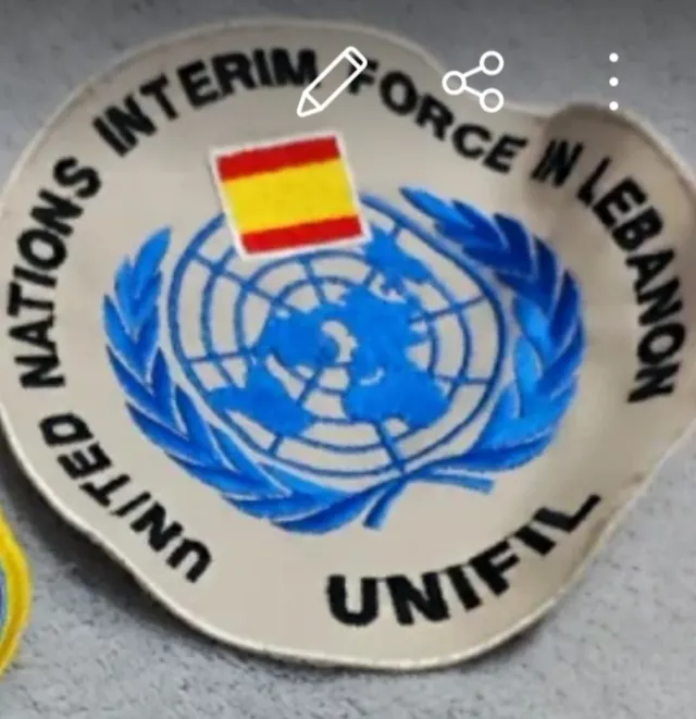 Detalles del productoLote de parche de la Fuerza Provisional de las Naciones Unidas en el Líbano (UNIFIL) con la bandera de España y una banda reflectante.