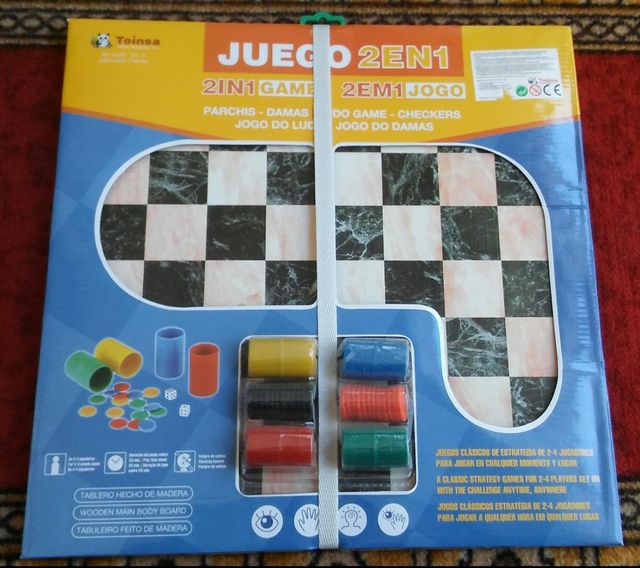 Detalles del productoJuego de mesa 2 en 1 con tablero de madera y fichas incluidas.