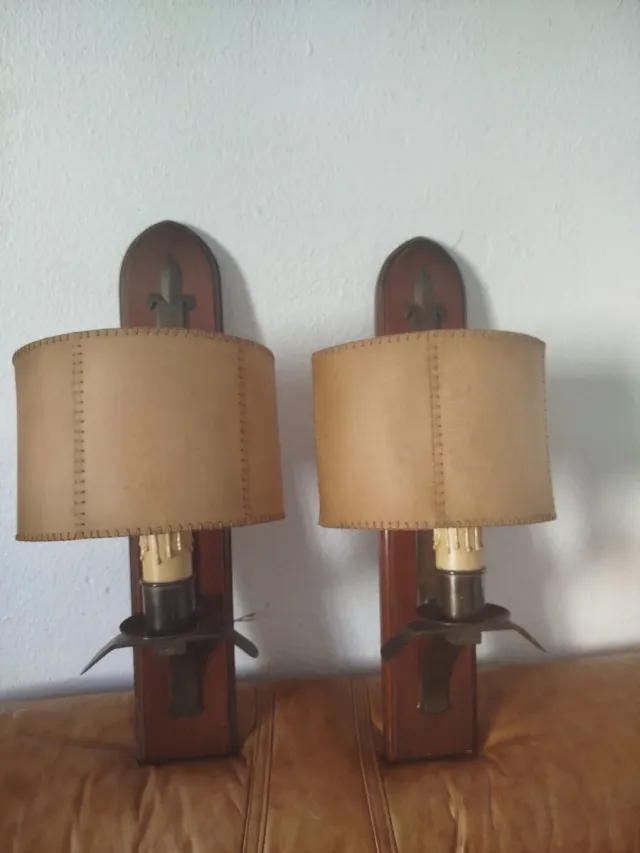 Conjunto de dos apliques de pared antiguos de la marca Valenti. Piezas con un diseño clásico y elegante. - Fabricados en madera y bronce.