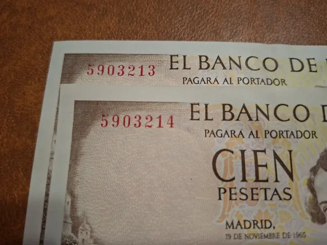 Detalles del productoSe venden dos billetes de 100 pesetas del año 1965. De Colección.