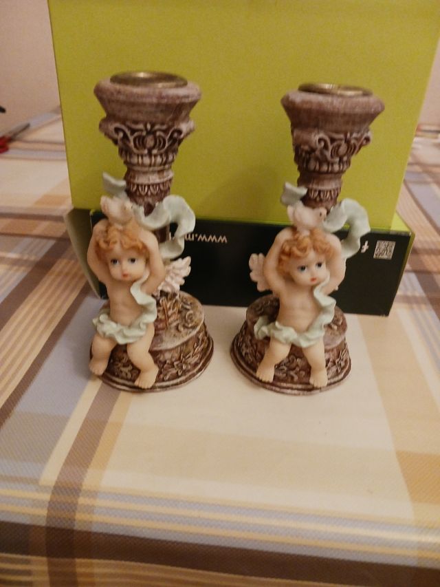 Detalles del productoSet de dos candelabros con figuras de angelotes.